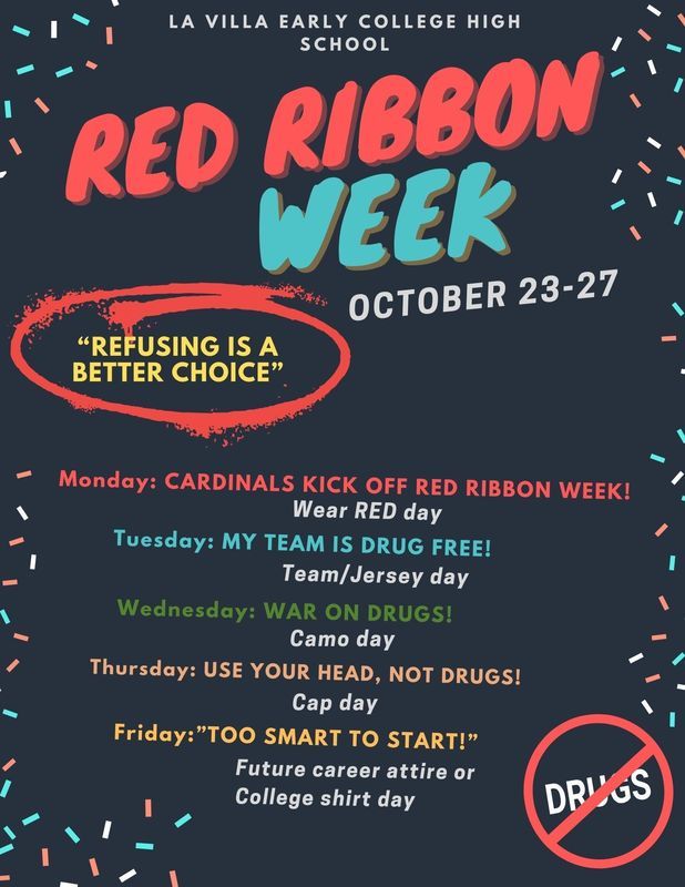 Parents and Students: Here is the calendar of events for Red Ribbon Week!